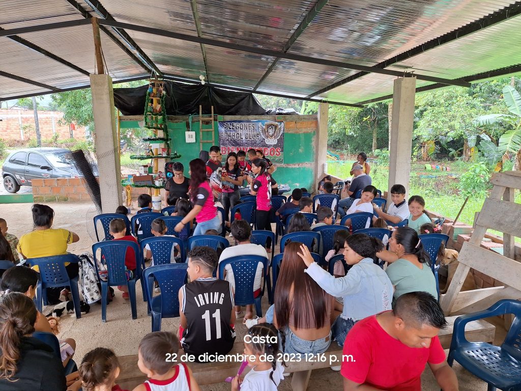 El día de hoy le doy gracias a Dios por un día más de vida y contar con la fortuna de pertenecer a esta gran familia Alegones FC, el día de hoy realizamos labor social a tres barrios de nuestro municipio de Orito, los Angeles, Villa Flor y acercamiento humano los almendros, consistente en entrega de 140 regalos para los 3 barrios a cada uno de los niños, un compartir 2 tortas donadas por Sosip y ropita para adulto y niños.